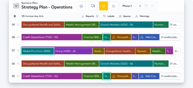 Automate move management and visualize seating with intuitive block and stack tools. Teams spend less time coordinating moves, while employees experience smoother transitions and more collaborative spaces. Scenario planning adapts layouts as needs change.